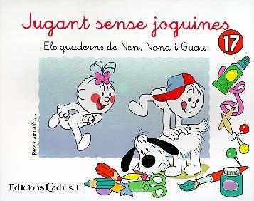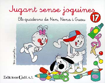 En aquest quadernm fem tot això: coneixem molt jocs que es podem fer encara que no tinguem joguines, treballem el número quatre i progressem en el seu traçat, però també reforcem el traçat de l'u, del dos i del tres, fem el traç ondulat, reconeixem el color blau - tant el blau cel com el blau marí -, treballem la lletra "a", el concepte davant-darrere i desenvolupem la motricitat manual, la imaginació i la técnica de retallar amb tisores.