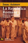 La serie informalmente titulada HISTORIA UNIVERSAL ASIMOV que reúne las obras dedicadas por el gran novelista y divulgador científico a la evolución política, cultural y material de la especie humana. LA REPÚBLICA ROMANA abarca el lapso transcurrido entre la fundación de Roma en el 753 a.C. y el 29 a.C. -momento en el que Octavio se hace con el poder absoluto-, que comprende el periodo monárquico, el ascenso de Roma a gran potencia tras su triunfo en las Guerras Púnicas y las diferentes guerras civiles que pusieron fin al periodo republicano.