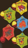 Libro con forma de estrella que muestra dibujos de diferentes medios de transportes. Además, incluye un sonajero para que el bebé se divierta con su sonido.