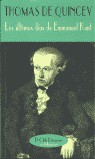 En 1827, veintitrés años después de la muerte del. gran filósofo alemán, apareció en Blackwood´s Magazine. el texto Los últimos días de Emmanuel Kant, de Thomas. De Quincey, como parte de una serie titulada Galería de clásicos. de la prosa alemana, y con