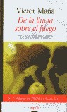 De la lluvia sobre el fuego puede ser la confesión de un redomado embustero, la historia de una amarga decepción amorosa o una crónica sentimental de los tiempos de la postrevolución sexual, pero sobre todo es una novela a dos voces llena de ironía, enredos y sentido del humor, un relato tragicómico sobre las siempre difíciles relaciones entre hombres y mujeres. Y la revelación de un joven novelista como Víctor Maña, que mereció con esta obra el Premio Café Gijón.