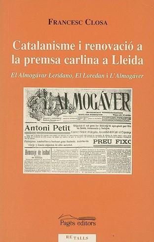 Catalanisme i renovació a la premsa carlina a Lleida analitza el creixent paper jugat pels mitjans de comunicació escrits en la renovació que el carlisme català dugué a terme a les darreries del segle XIX i principis del XX. El llibre se centra en l'anàlisi de la premsa carlina durant gran part de la Restauració, prenent com a base els tres diaris carlins més importants de les terres de Lleida, El Almogávar Leridano, El Loredan i L'Almogáver. La premsa carlina analitza el passat, el jutja i també adverteix el que pot succeir. Cada diari escull aquelles notícies que considera més oportunes i sobre les quals convé o no formar opinió, si és necessari redreçar la situació o aprofundir en la seva crisi. Així, exclou, inclou i jerarquitza la informació segons uns marcs determinats, atorgant un pes i una valoració a cada notícia.