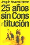 25 años sin Constitución incide en la realidad constitucional nacional, la vigencia de un texto basado, teóricamente, en los principios democráticos de la división y regulación de los tres poderes clásicos, y cómo la injerencia institucional del ejecutivo en el legislativo hace incompatible la práctica real con el cumplimiento formal de las leyes establecidas, siendo así la Constitución un mero apéndice ornamental de los gobiernos mayoritarios de turno y de los grupos de poder y lobbies asociados a los mismos. El temor de políticos e intelectuales a que una reforma profunda de la Constitución, en lo referente a la monarquía, p. ej., ponga en peligro la estabilidad y la democracia conseguidas, impide que se lleve a cabo lo que el autor considera que sería el presupuesto indispensable para la regeneración institucional, la convivencia y el respeto a las libertades democráticas.