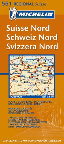 La edición actualizada del mapa Regional Suisse Nord, editado a escala 1/200 000, incorpora un índice de localidades, cuadro de distancias y tiempos de recorrido entre ciudades, así como los planos de Berna, Basilea, Zúrich y Lucerna.