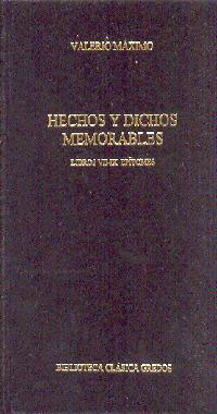 Los Hechos y dichos memorables de Valerio Máximo (escritor y orador del s. I. d. C., contemporáneo del emperador Tiberio) constituyen una compilación de dichos y hechos de personajes célebres del mundo antiguo destinada a los alumnos de retórica. La finalidad del autor era que estos tuvieran a su alcance un manual en el que buscar anécdotas y frases con las que ilustrar sus discursos. De lectura ágil y amena, la obra sigue vigente hoy en día como fuente inapreciable de noticias curiosas de la Antigüedad. Del interés que han despertado los Hechos y dichos memorables a lo largo de la Historia dan buena prueba el que muy pronto se hicieran epítomes (como el de Julio Paris y el de Nepociano) y la influencia que ejerció en autores posteriores como Alcuino de York, Petrarca, Juan de Valdés, etc. El volumen I incluye los libros I al VI. El volumen II, los libros VII al IX y los epítomes.