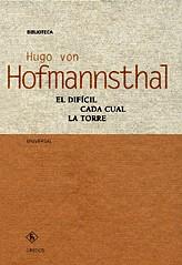 Este volumen contiene tres de las obras más representativas de quien sin duda es el mejor dramaturgo de la Viena de "fin de siècle": Hugo von Hofmannsthal (1874-1929): El difícil, Cada Cual" y La torre"@ un drama de salón, un misterio medieval y un d