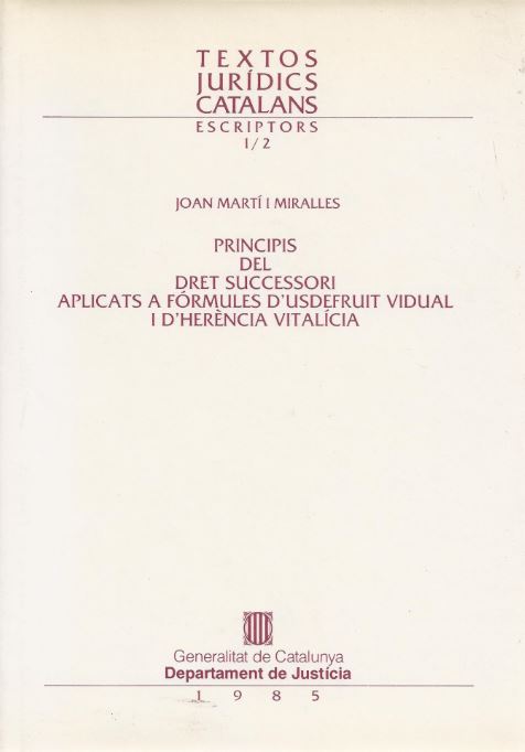 Obra fonamental del jurista Joan Martí Miralles (1866-1949), autoritat destacada en l'especialitat del dret successori. En edició facsímil, l'obra exposa els principis del dret de successions per causa de mort segons el sistema romà-català i dóna aplicacions per a la resolució de problemes d'usdefruit vidual i d'herència vitalícia.