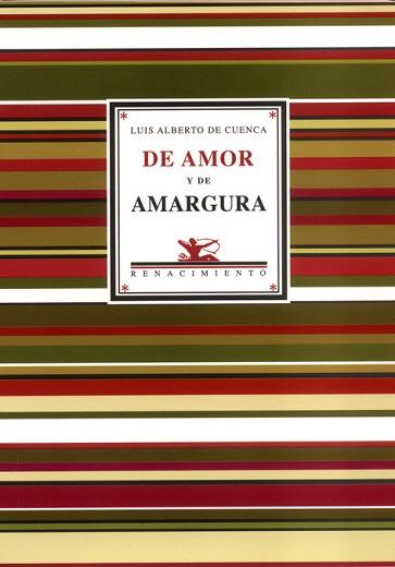 «De amor y de amargura recoge lo más granado de la poesía amorosa de uno de nuestros mejores poetas del amor, Luis Alberto de Cuenca. Esta selección abarca toda la obra poética del autor: desde Los retratos (1971), que es pieza de coleccionista, hasta el reciente Sin miedo ni esperanza (2002), pasando por La caja de plata (Renacimiento, 1985), que cambió el rumbo de la poesía española contemporánea. La colección cuenta con un aliciente muy especial: algunos poemas inéditos, con la tinta aún fresca. La herida del amor se ha manifestado en la poesía de Luis Alberto de Cuenca desde sus primeros poemas, y la vida le ha ido echando sal cada cierto tiempo para reavivarla. Esa sal se ha transformado en semilla de la que nacen los poemas de esta antología. Los lectores que coman de este fruto sabrán más del amor y de la vida.» Diego Valverde Villena