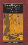 El escritor y polemista inglés Thomas de Quincey (1785-1859) poseía una erudición vasta y excéntrica, fruto del intenso estudio y de la soledad, y su vida fue un ejemplo de entrega total al cultivo del intelecto y de la aplicación del ingenio y del humor