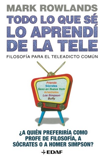 Todo lo que sé lo aprendí de la tele se sirve de nuestras series favoritas de televisión para explicarnos cómo afectan a nuestras vidas las grandes cuestiones filosóficas. Las únicas calificaciones que se exigen para entroncar con esa idea son un sofá, sentido del humor y una mente inquieta. ¿Cómo definiría en qué consiste eso del buen vivir? Homer Simpson y familia no son capaces de ponerse de acuerdo con la forma de vida propuesta por Nietzsche y Epicuro, por mencionar dos formas de pensar totalmente opuestas. ¿Qué significa asumir responsabilidades? Buffy pone en un compromiso a David Hume y a Jean-Paul Sartre. ¿Dónde acaba el amor y empieza la amistad? Platón, Aristóteles y Schopenhauer tratan de que Rachel y Ross, garcias a Friends, sean mejores amantes. Respuesta para estas y otras inquietantes cuestiones que nos plantea la vida, gracias a la ayuda de Tony Soprano, Carrie Bradshaw, de Sexo en Nueva York; Niles y Frasier Crane, jack Bauer, el de 24 y Jerry Seinfeld.