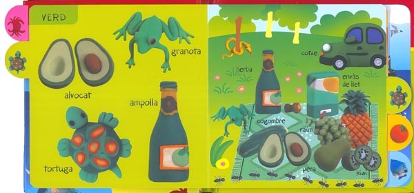 Un llibre molt divertit de pàgines de cartró encunyat en forma d¿índex per a descobrir i aprendre els colors més freqüents que envolten als petits lectors.