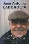 Dejando de lado su actividad política, Labordeta va hilvanando un retrato sentido y vital de los años pasados y sus amistades en un libro definitivo, escrito con una de sus hijas, y que aparece con motivo de su 75 cumpleaños. En Regular, gracias a dios, José Antonio Labordeta recuerda su infancia durante la Guerra Civil, los años pasados en Teruel recién casado, su breve estancia parisina, sus vivencias como cantautor durante la Dictadura, la vida en Zaragoza y aquella experiencia maravillosa recorriendo España con una mochila al hombro. También reflexiona sin sentimentalismos sobre los días pasados y el cáncer que le ha postrado en esta etapa de su vida. «A lo largo de los años he contado mi vida desde distintos puntos de vista. Lo hice como cantautor, como político y ahora lo hago como un ciudadano que ha visto y vivido su vida desde distintas perspectivas. Ni buenas ni malas. Solo diferentes. Al final, querido lector, tienes en tus manos la verdadera historia de un ciudadano embestido por la vida y por la hospitalidad de un hospital. Nada más, ni nada menos.»