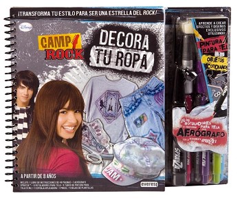 Con este fabuloso libro, los fans de Camp Rock aprenderán a decorar su propia ropa usando estarcidos inspirados en la película. Aparte de las instrucciones detalladas de las diferentes técnicas, el libro incluye seis rotuladores especiales para tela, una herramienta tipo aerógrafo, tres tubos de pintura para tela, una esponja, un pincel y cuatro páginas de estarcidos.