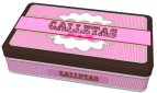 Caja de latón que contiene: libro con 28 recetas sencillas y golosas de galletas, tres imanes para la nevera y cortapastas.