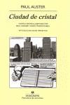 Quinn, que en otros tiempos fuera poeta y cuya mujer e hijo han muerto, vive en soledad escribiendo novelas policíacas. Alguien lo llama varias veces por teléfono en medio de la noche, tomándolo por un detective llamado Paul Auster, y solicitando su ayuda. Quinn decide al fin personificar al desconocido Paul Auster y conoce entonces a otro pálido poeta, que cuenta una historia aterradora: cuando nació, su padre lo encerró y aisló del mundo durante años para que pudiera hablar la lengua que olvidaron los hombres tras la construcción de la torre de Babel. Pero el niño fue rescatado y el padre recluido en una institución, de la que ahora está a punto de salir. El hijo teme por su vida y desea que el detective Paul Auster ?o Quinn? lo proteja. Ciudad de cristal inicia La trilogía de Nueva York, un deslumbrante conjunto de thrillers posmodernos que consagró a Paul Auster como un clásico contemporáneo. Ahora nos llega en forma de novela gráfica de la mano de los grandes dibujantes David Mazzucchelli y Paul Karasic, quienes consiguen crear «un extraño doble, un Doppelganger del libro original», como dice Art Spiegelman, creador de Maus e instigador de la adaptación.
