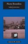 Este breve libro, que tan poderoso impacto causó en Francia, reúne los textos de dos emisiones televisivas realizadas en el Collège de France. En ellas, Pierre Bourdieu presenta los logros de su investigación sobre la televisión. La primera desmonta los mecanismos de la censura invisible que se ejerce sobre la pequeña pantalla. La segunda explica cómo la televisión ha alterado profundamente el funcionamiento de universos tan diferentes como los del arte, de la filosofía o de la política, e incluso de la justicia y de la ciencia; y ello produciendo en estos campos la lógica de los índices de audiencia, es decir del sometimiento demagógico a los requisitos del plebiscito comercial. Por indicación del autor se han añadido a la edición española dos textos y un posfacio. En palabras de Bourdieu: «Para mí, el mensaje más importante de este libro era una llamada a la constitución de un movimiento en favor de un periodismo cívico y crítico»