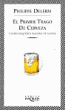 Nada hacía pensar que El primer trago de cerveza, un libro considerado en principio «minoritario», destinado a críticos exigentes y a un público selecto, que salió a la calle humildemente en la primavera de 1997, sin estudios de mercado ni publicidad, pudiera convertirse en todo un acontecimiento literario en Francia a las pocas semanas de ser publicado y que permanecería por más de un año entre los tres primeros libros más vendidos. De la noche a la mañana, toda Francia pasó a disfrutar de los pequeños placeres y a compartir con Philippe Delerm su especial concepción de la vida. El primer trago de cerveza es la narración breve, exquisita, de esas situaciones, comunes a todos, que, en los tiempos ajetreados en que vivimos, se deslizan sin que les prestemos atención y que, en cambio, encierran el germen del buen vivir. A Philippe Delerm, al parecer, no se le escapa una sola oportunidad de aprovechar esos momentos, y al hacerlo, incita al lector a reconocer en sí mismo cuáles son sus propios instantes de gozo. Si, por ejemplo, en una luminosa y fría mañana de invierno, a alguien le llena de placer salir a comprar croissants recién hechos, es muy probable que otros descubran que, en cambio, con lo que más disfrutan es con «el indecente placer de saborear un banana-split». ¡Tantos instantes, tantas pequeñas historias, tantos minúsculos placeres, al alcance de todos y que, sin embargo, nos parecen tan ajenos!