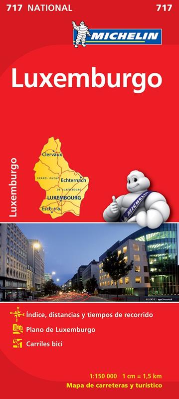 El Mapa National Luxemburgo, editado a escala 1/150 000, guarda además otros interesantes contenidos, tales como un índice de localidades, cuadro de distancias, tiempos de recorrido, el plano de la ciudad de Luxemburgo y carriles bici.