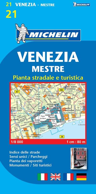 Encuentre todas las informaciones prácticas para recorrer Venecia a pie o en bicicleta. El plano MICHELIN Venezia, a escala 1/6 000 (1cm = 60m), es ideal para recorrer los barrios de la ciudad. Para completar la información incluye: plano de los vaporettos, transportes, sentidos de circulación, localización de monumentos... y un anexo con el índice de todas las calles.