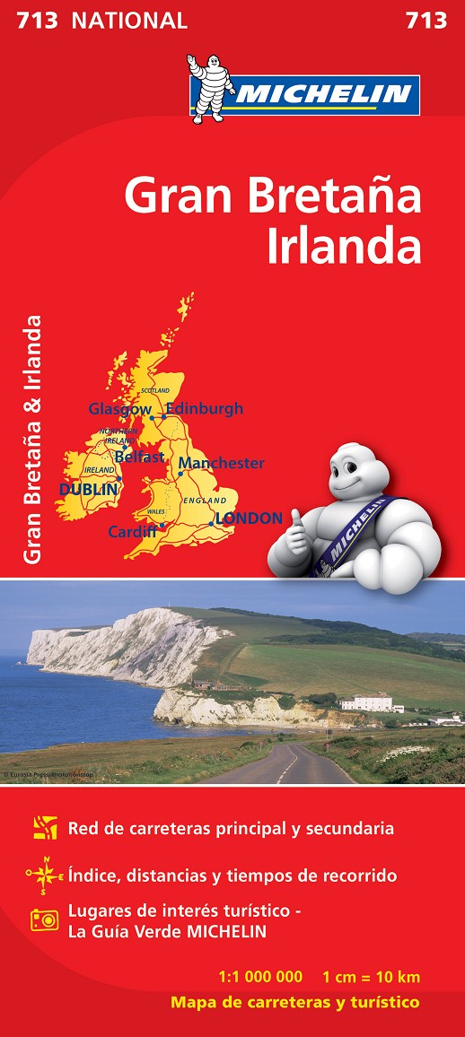 El Mapa National Gran Bretaña e Irlanda, editado a escala 1/1 000 000 y actualizado en 2012, guarda además otros interesantes contenidos, tales como la red de carreteras principal y secundaria, índice de localidades, cuadro de distancias, tiempos de recorrido, y lugares e informaciones de interés turístico que han sido extraídos de La Guía Verde MICHELIN.