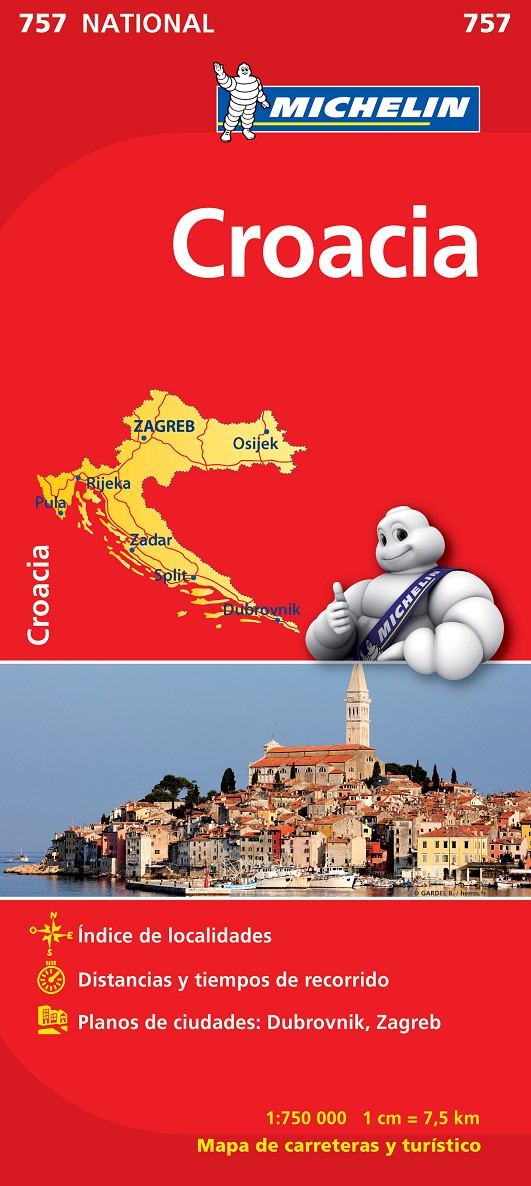 El Mapa National Croacia, editado a escala 1/750 000 y actualizado en 2012, guarda además otros interesantes contenidos, tales como los planos de la ciudades de Dubrovnik o Zagreb, índice de localidades, cuadro de distancias y tiempos de recorrido.