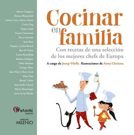 Cocinar en familia es un libro que pretende animaros a compartir con vuestros hijos un rato divertido y relajado ante los fogones. Algunos de los mejores chefs de Europa quieren ayudaros. Cada uno de ellos ha adaptado uno de sus platos ?estrella? con esmero, manteniendo todo el espíritu de la receta original. En cada receta explican, paso a paso, todo el proceso y distinguen muy gráficamente las tareas que realizan los mayores de las que tienen que llevar a cabo los niños para conseguir un resultado que haga las delicias de los comensales.