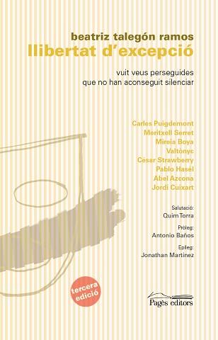 La llibertat d'expressió és un dels drets bàsics perquè una democràcia es pugui considerar com a tal. La llibertat de pensament, l'accés a la informació contrastada i veraç, representen garanties sense les quals una societat no es pot considerar lliure. Mitjançant l'entrevista, a Llibertat d'excepció es fa un recorregut per diferents àmbits des dels punts de vista d'actors socials de gran rellevància actual. Hi han col·laborat, a més, escriptors i intel·lectuals que donen la seva visió sobre la importància del fet de trobar-nos en moments de repressió. Un llibre elaborat per poder-lo llegir de diferents maneres: les preguntes semblants als entrevistats permeten fer un recorregut saltant d'una entrevista a l'altra per contrastar les diverses opinions sobre una mateixa qüestió. Serveix així per comprendre també els diferents punts de vista sobre aquest assumpte tan important. Avui dia, aquest llibre representa, sense cap dubte, una excepció de llibertat. Passeu i llegiu.