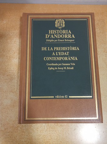 Història d´Andorra vol completar la sèrie de col·leccions iniciada el 1987 amb Història de Catalunya, i continuada amb Història del País Valencià i Història de les Illes Balears, tot un conjunt d´obres que constitueixen una referència indiscutible en la historiografia dels territoris de parla catalana.Obra dirigida pel catedràtic d´Història Moderna de la Universitat de Barcelona Ernest Belenguer, reuneix en un sol volum als més prestigiosos coneixedors de la història de l´estat veí, tant andorrans com catalans.Enquadernat en símil de pell i or.Il·lustrat amb prop de 200 fotografies, gràfics i mapes inserits en el text.Índex:- L´evolució de la histografia andorrana - Aspectes polítics i socials a l´Andorra de l´època moderna- Els orígens del poblament de les valls d´Andorra - Tradició i canvi polític a l´Andorra del segle XIX - El Neolític - El poblament a Andorra - Andorra entre els segles I-V - L´Andorra de la primera meitat del segle XX- Andorra entre els segles VI-XI- L´evolució política del 1945 al 1993- Andorra entre els segles XII-XV- El Romànic a Andorra - La població andorrana a l´època moderna - Arquitectura d´autor a Andorra: 1860-1960 - L´economia andorrana moderna (1550-1815)- Epíleg: L´Andorra actual des de 1990Col·leccions/ Obres relacionades: Història de CatalunyaHistòria de les Illes BalearsHistòria del País ValenciàCronologia de Catalunya, País Valencià i Illes BalearsDiccionari d?Història de Catalunya Atles d?Història de Catalunya