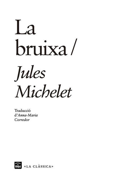La dona, l'amor, la natura, però també els capellans i en particular els directors espirituals, van obsedir Michelet; tots aquests temes els trobem a La bruixa. La bruixa, ja ho sabem, tradicionalment és una dona malvada, menyspreada, tan perversa que l'Església en va fer cremar un munt en horribles...