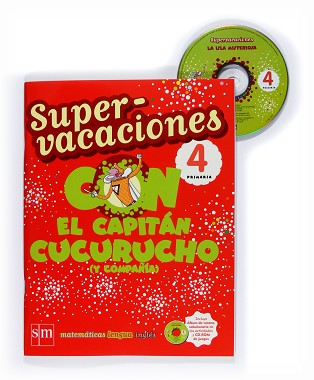 El libro de Supervacaciones SM para el cuarto curso de Primaria tiene como objetivo ayudar a los niños a mantener los hábitos aprendidos durante el curso escolar y repasar los principales aprendizajes que han incorporado en las áreas de Matemáticas, Lengua e Inglés. Los niños y niñas de 9 y 10 años podrán ocupar una parte de su tiempo de ocio con lecturas y actividades divertidas que podrán realizar de forma autónoma motivados por unos personajes muy atractivos, el Capitán Cucurucho (y compañía).