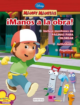 Libro basado en la serie de televisión Manny Manitas. Contiene páginas para colorear, páginas a todo color, actividades, recortables, etc.