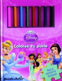 Colorea las piezas con imágenes de Cenicienta, Blancanieves, Aurora, Ariel y Bella siguiendo el modelo de la página de al lado. Cuando hayas terminado, diviértete resolviendo los puzles tantas veces como quieras.