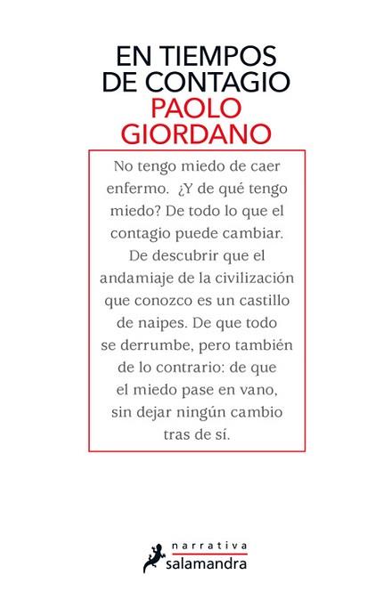 Giordano nos obliga a coger aire ante la crisis del COVID-19 y reflexionar sobre nuestra responsabilidad colectiva, porque, «en tiempos de contagio, somos un solo organismo, una comunidad». Un nuevo virus irrumpe en un país lejano, aunque no tan lejano. La Tierra se ha vuelto pequeña. Día tras día, billones de impulsos digitales transportan la información a la velocidad de la luz de un punto a otro del planeta; infinidad de aviones surcan los cielos, borrando fronteras a su paso y trasladando sin pausa a millares de personas; y, a menor velocidad, miles de toneladas de mercancías se mueven en todas direcciones en un incesante intercambio mercantil que nutre la economía global. Y si los bienes materiales llegan hasta los lugares más recónditos con inusitada fluidez, con mayor celeridad aún se transmiten los elementos intangibles consustanciales al ser humano: la palabra, las ideas, los sentimientos, las emociones. Así pues, ante la amenaza de un virus letal de alcance universal, una miríada de opiniones, conjeturas y teorías de todo tipo -desde aquellas basadas en el rigor de la ciencia hasta las que brotan de la fértil imaginación de iluminados y charlatanes- nos envuelve como un sofocante alud que nos dificulta ver, pensar y decidir con sensatez. En este contexto tan especial, Paolo Giordano comparte con encomiable honestidad y valentía una serie de reflexiones y emociones que le provoca esta inaudita situación, poniendo de manifiesto otra vez una rara virtud para aunar dos mundos supuestamente irreconciliables: la contundente racionalidad del científico con la vulnerabilidad y las incertezas propias de un escritor sensible y comprometido.