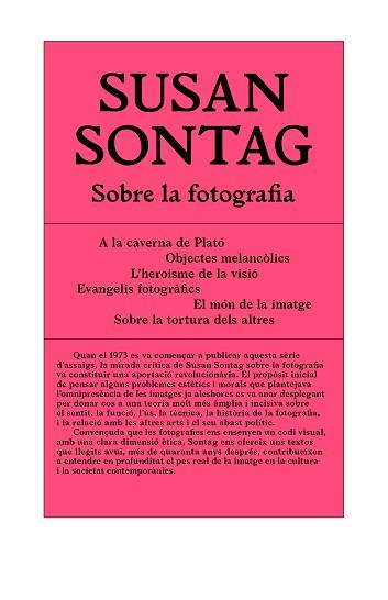 Quan el 1973 es va començar a publicar aquesta sèrie d'assaigs, la mirada crítica de Susan Sontag sobre la fotografia va constituir una aportació revolucionària. El propòsit inicial de pensar alguns problemes estètics i morals que plantejava l'omnipresència de les imatges ja aleshores es va anar desplegant per donar cos a una teoria molt més àmplia i incisiva sobre el sentit, la funció, l'ús, la tècnica, la història de la fotografia, i la relació amb les altres arts i el seu abast polític.