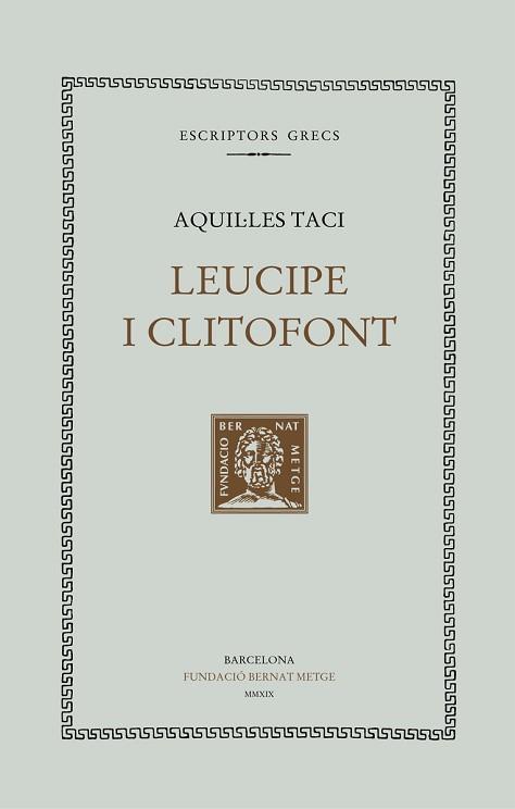 Amb la publicació de la primera traducció al català de la novel·la Leucipe i Clitofont d?Aquil·les Taci (coneguda també com Les aventures de Leucipe i Clitofont), la col·lecció Bernat Metge reprèn la traducció d?un gènere, el de la novel·la grega, que va gaudir de gran popularitat a l?Antiguitat i que ja compta, en la nostra col·lecció, amb dos títols publicats: les Efesíaques de Xenofont d?Efes, a càrrec de Carles Miralles (1967), i Dafnis i Cloe de Longus, a càrrec de Jaume Bernenguer i Francesc J. Cuartero (1981). Encara que l?única obra d?Aquil·les Taci que ens ha pervingut sencera és aquesta, l?obra d?aquest rètor i escriptor alexandrí ?que només coneixem pels escassos fragments que ens n?han arribat? va gaudir d?un gran èxit entre els seus contemporanis.