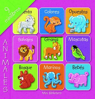 Estuche que contiene 9 pequeños libritos de cartón, ilustrados a todo color, con una palabra en cada página, para que los más pequeños puedan ir ampliando su vocabulario.