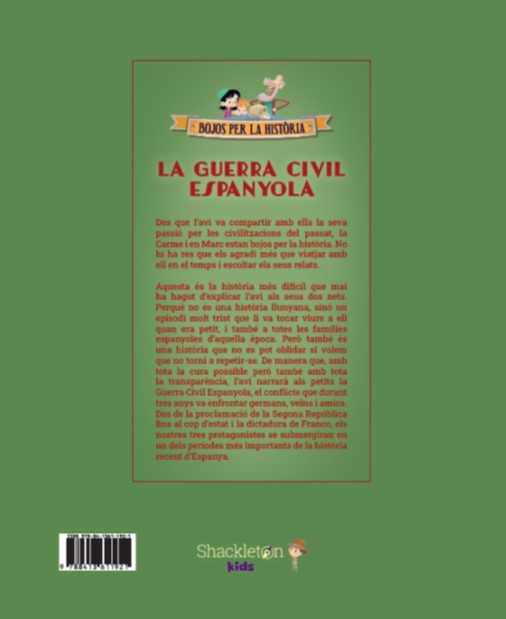 Aquesta és la història més difícil que ha hagut d'explicar l'avi Eduard als seus dos nets, la Carme i en Marc. Perquè no és una història llunyana, sinó un episodi molt trist que li va tocar viure quan ell era petit, i també a totes les famílies espanyoles d'aquella època. Però és també una història que no es pot oblidar si volem que no torni a repetir-se. De manera que, amb tota la cura possible però també amb tota la transparència, l'avi narrarà als petits la Guerra Civil espanyola, el conflicte que durant tres anys va enfrontar germans, veïns i amics.