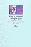 Pero un Estado perfecto no puede subsistir sin leyes. Como el De Republica lo escribió Cicerón con los ojos puestos en la relidad del Estado romano, así el De legibus lo compone luego observando las condiciones políticas y la vida jurídica y social de su pueblo, siendo propiamente un tratado general de filosofía del derecho, aplicado a la vida romana. Escribe estos tratados en su mejor época, cuando aparecen en él sumamente equilibradas la forma literaria y la solidez de la inspiración, cuando asimila y discierne poderosamente lo ajeno y aplica sus experiencias propias a cuanto piensa, habla y escribe.