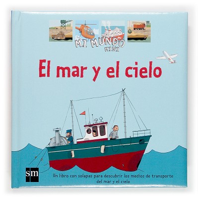 Un libro con lengüetas y solapas para que el niño aprenda cuáles son los medios de transporte marítimos y aéreos.