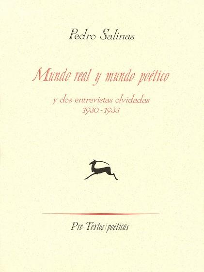 Mundo real y mundo poético es una conferencia, hasta ahora inédita, leída por Pedro Salinas en varias ciudades de España en la primavera de 1930 y en Barcelona en 1933. El manuscrito se conservaba durante años -décadas, quizás- entre los papeles de su amigo Jorge Guillén, y hoy puede examinarse en la Houghton Library, Harvard University. El interés de este texto me parece obvio. Situado entre dos de los libros más conocidos de Salinas -Seguro azar (1929) y Fábula y signo (1931)- recoge ideas suyas sobre la poesía en un momento temprano de su obra. Se trata de un primer acercamiento crítico a un tema que Salinas consideraba fundamental en su propia obra y en la de cualquier escritor: el encuentro entre el mundo exterior y el mundo íntimo de cada poeta.