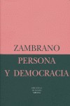 María Zambrano publicó por primera vez su libro Persona y democracia en 1958, en circunstancias –según ella misma confiesa en su prólogo de 1987– «bien diferentes» a las que vivimos hoy. Lo que las nuevas circunstancias revelan es la renuncia del hombre a ser persona, a vivir humanamente; habita en un eterno presente donde la historia ya no se constituye como proyecto, donde no existe progreso ni democracia, sino el poder absoluto de dioses oscuros ávidos de sacrificios humanos: la democracia y la historia verdaderas –humanas y, por tanto, morales– parecen empresas condenadas a la destrucción. «Y entonces, ¿a cuento de qué viene la publicación de este libro? Muy simplemente lo diré: como un testimonio, uno más, de lo que ha podido ser la historia, de lo que pudo ser.»Pudo ser la manera de conocer el medio más propio del hombre, el tiempo; el paso del modo trágico de hacer historia al modo libre de llevarla a cabo, o el despertar del hombre del sueño a su verdadero ser, a su ser persona y no individuo. Pudo ser, en definitiva, la fe en el porvenir, en una sociedad sin temor a la realidad. Décadas después, lo que pudo haber comenzado está aún por llegar.