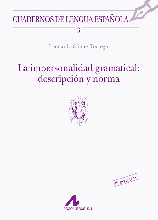Es frecuente agrupar bajo la denominación de impersonalidad fenómenos muy heterogéneos sintáctica y semánticamente. Además, son muchos los casos de impersonalidad sintáctica que no recogen los manuales. La intención de esta obra es poner orden en el campo de la impersonalidad y diferenciar diversos tipos. El tratamiento del tema es en parte descriptivo y en parte normativo, pues con ciertos aspectos de impersonalidad se incurre con alguna frecuencia en algunas incorrecciones y/o agramaticalidades. En este trabajo, pues, el autor trata de aunar sintaxis y norma.